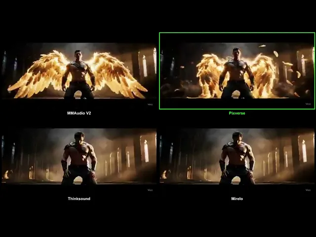 Optimized for synthetic video content — Mirelo SFX thrives where others stumble.